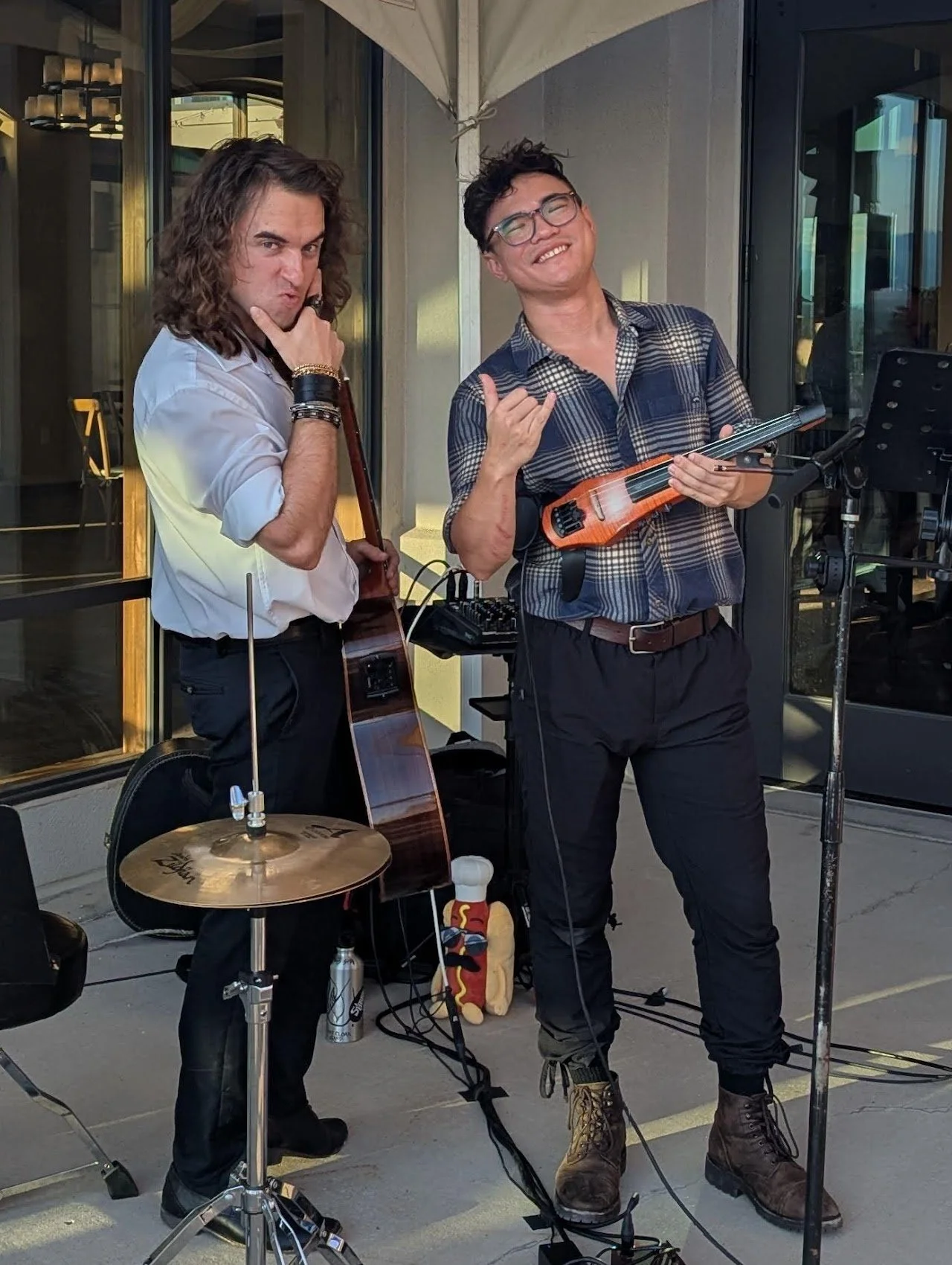 The Teller Duo is a small band based out of Denver Colorado. Don't be fooled though, this duo fills a room with velvety smooth melodies! Their style and repertoire orbits jazz and classical music, with an emphasis on early big band tunes. Experience all the rich sultry, nostalgia of Nat king Cole, Duke Ellington, Dean Martin, and Frank Sinatra. With just a violin, classical guitar, high hat and Karl’s smooth, resonant singing voice, they easily travel to add style and sophistication to your most important events. Currently in residence, you can preview and enjoy the Teller duo every Monday night at the Renaissance hotel on 15th and Champa and Friday nights at the Inverness Resort in Englewood.